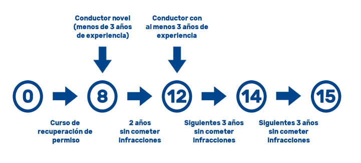 En caso de pérdida parcial de puntos debido a infracciones graves o muy graves, puedes recuperar el crédito inicial de 12 puntos si pasas dos años sin cometer infracciones que detraigan puntos.